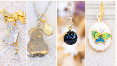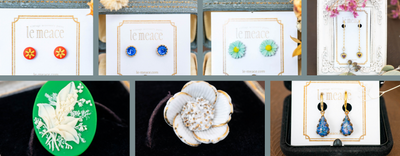 ターコイズカラーのパーツは種類が豊富です。様々な形やデザインで加工されており、天然のターコイズは希少で高価なもので合ったため、ガラスにて模造されコスチュームジュエリーなどに使用された背景があります。同じ色や形のガラスでも模様が異なるため、それぞれが「1点もの」としての面白さがあり、コレクションとしても魅力的です。