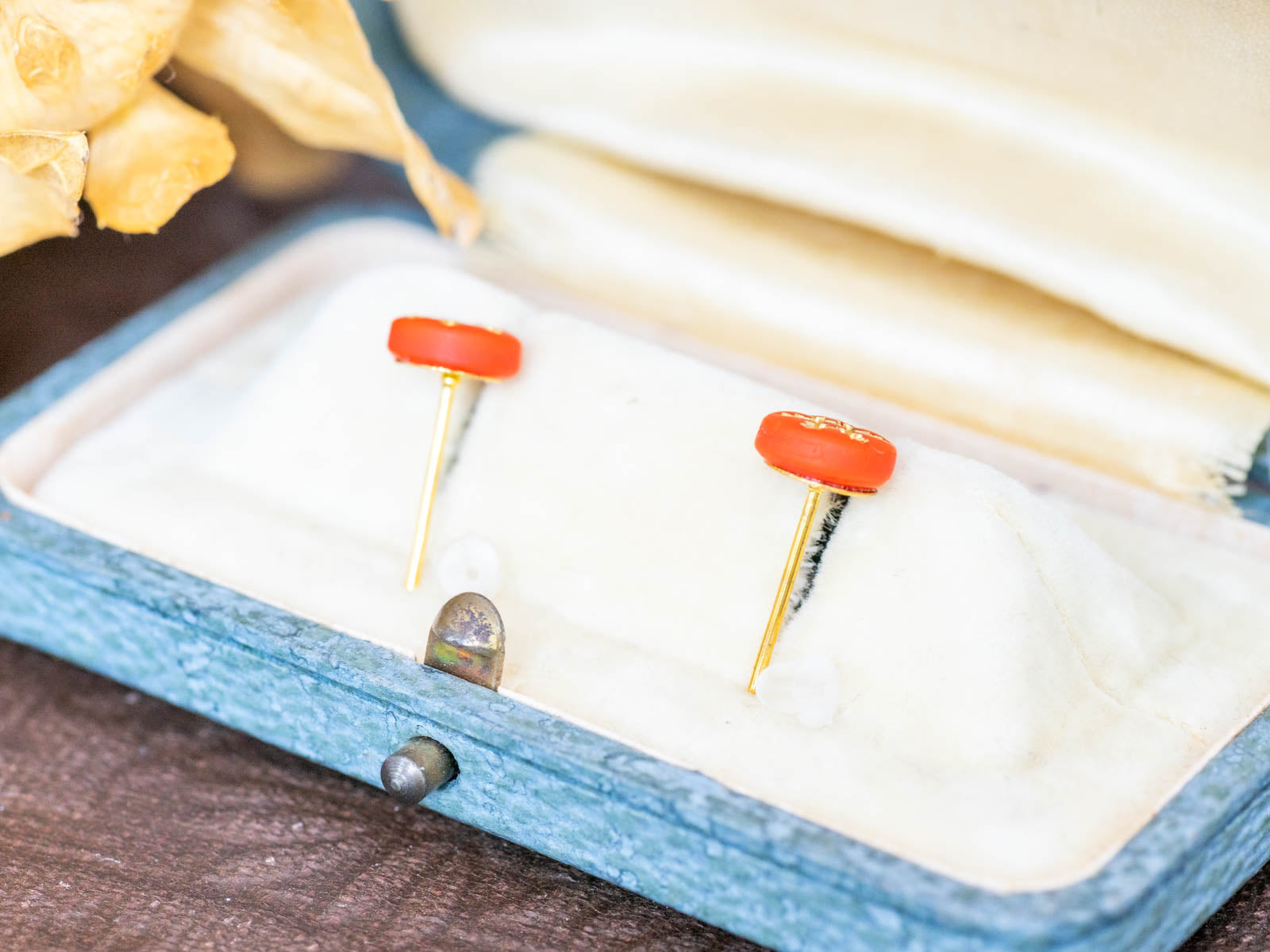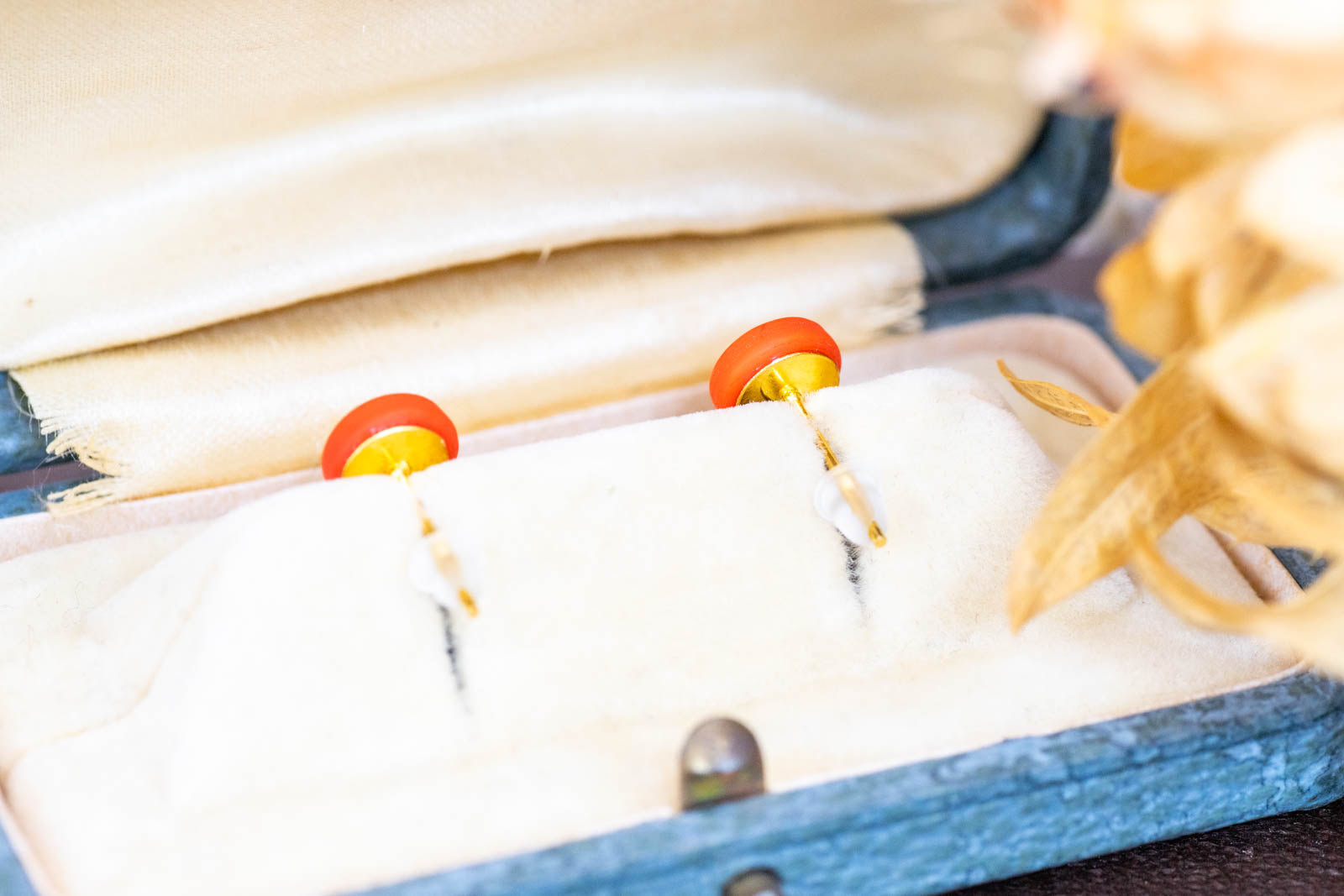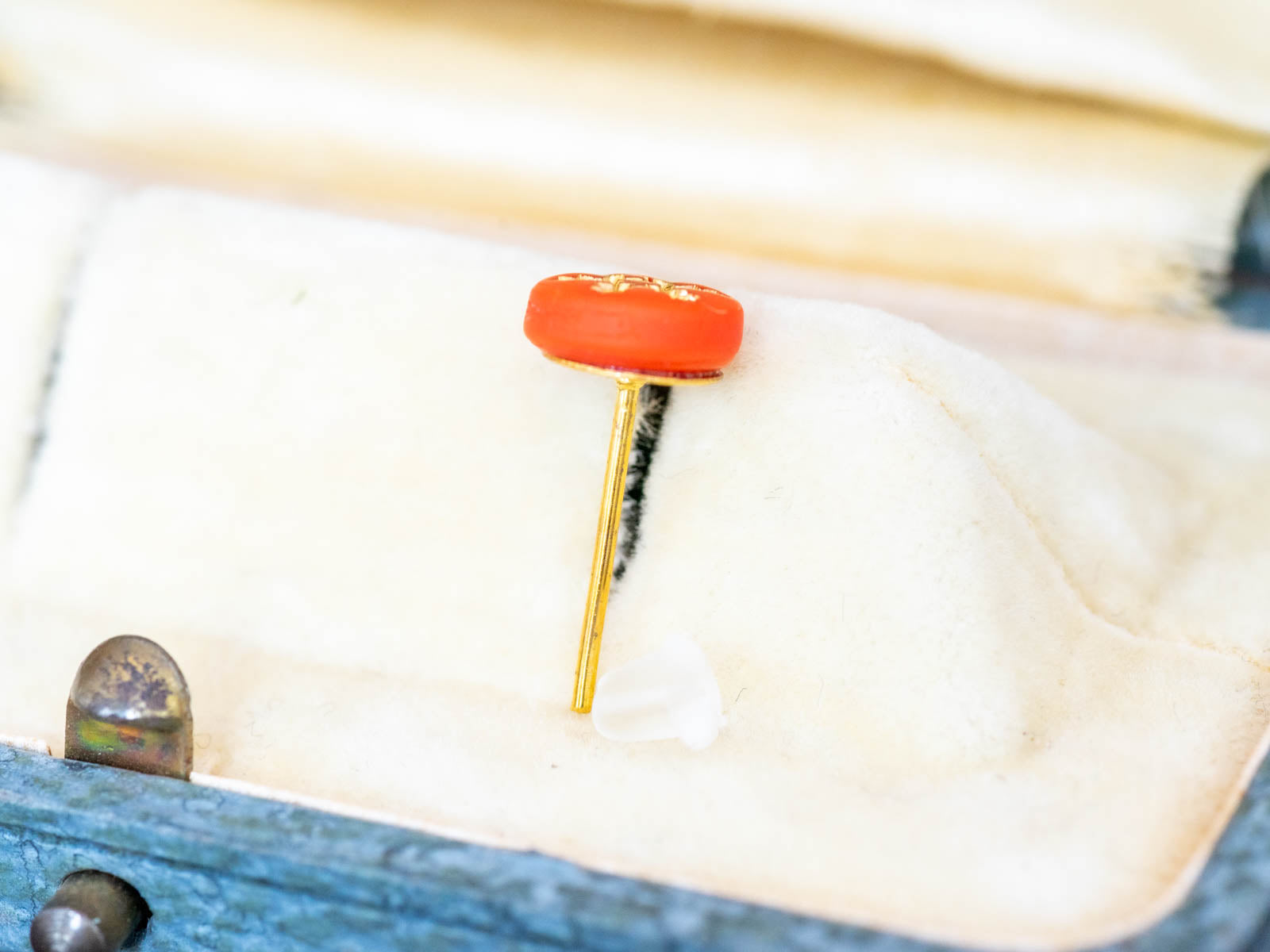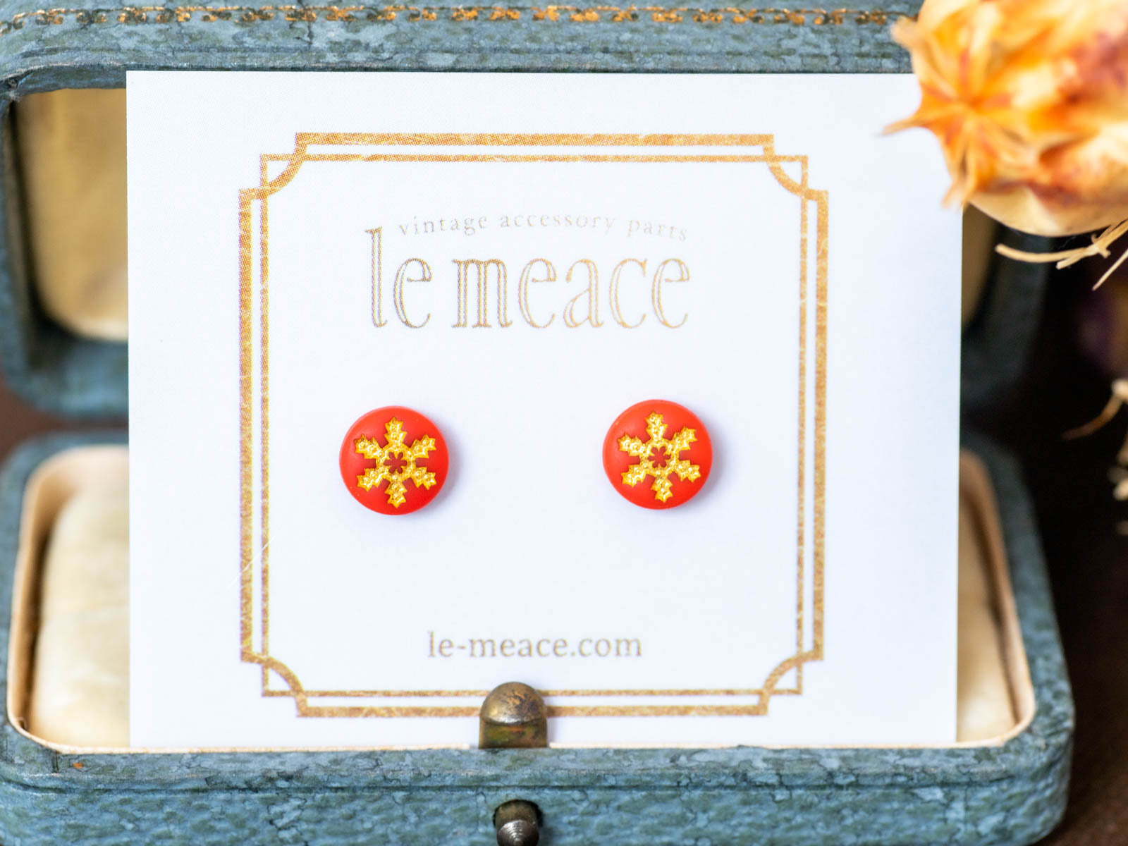 オレンジにゴールドのスノーフレークが内彫りされたピアス