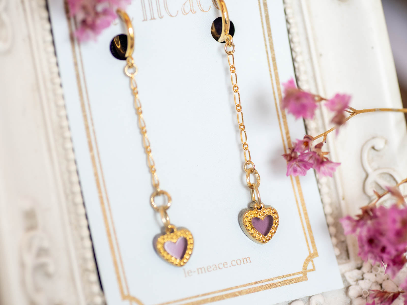 アメジスト&ゴールドのハート・ロングタイプイヤリング