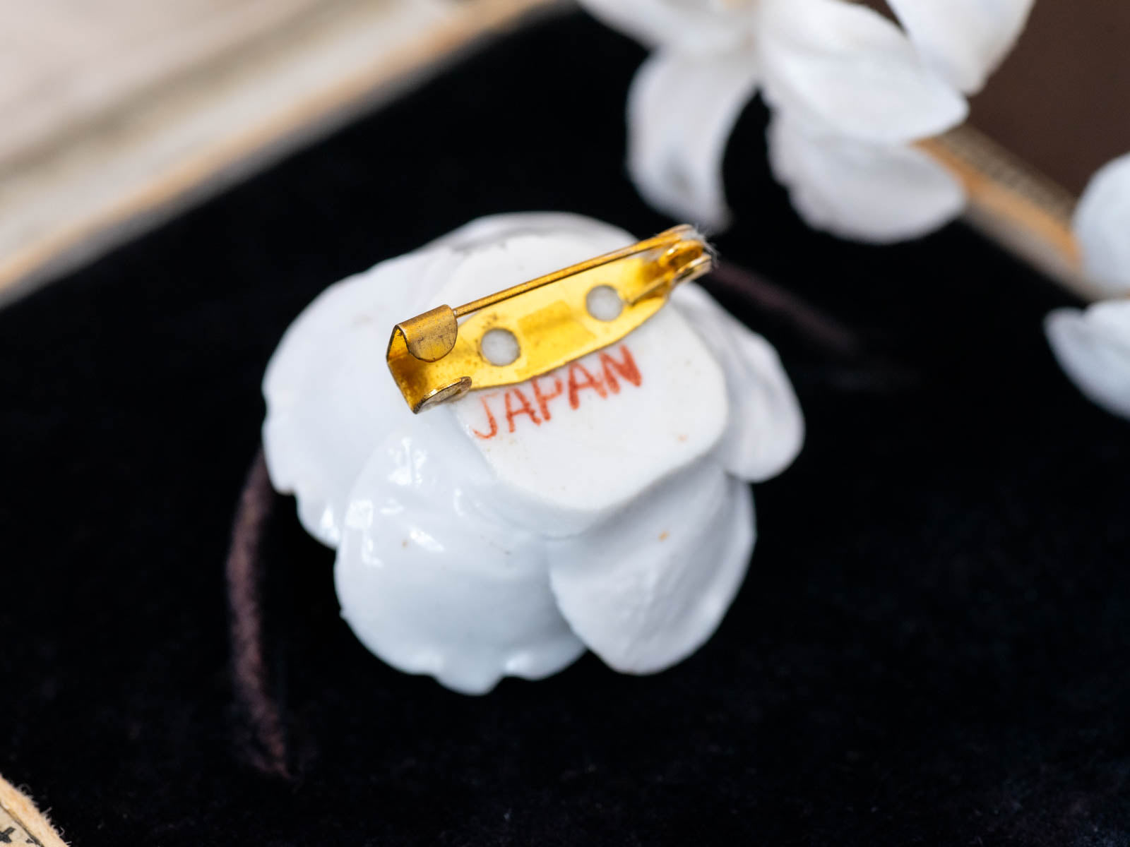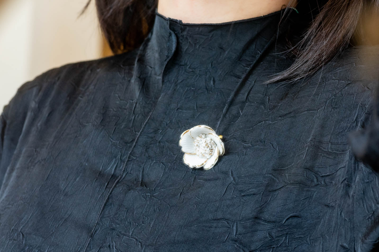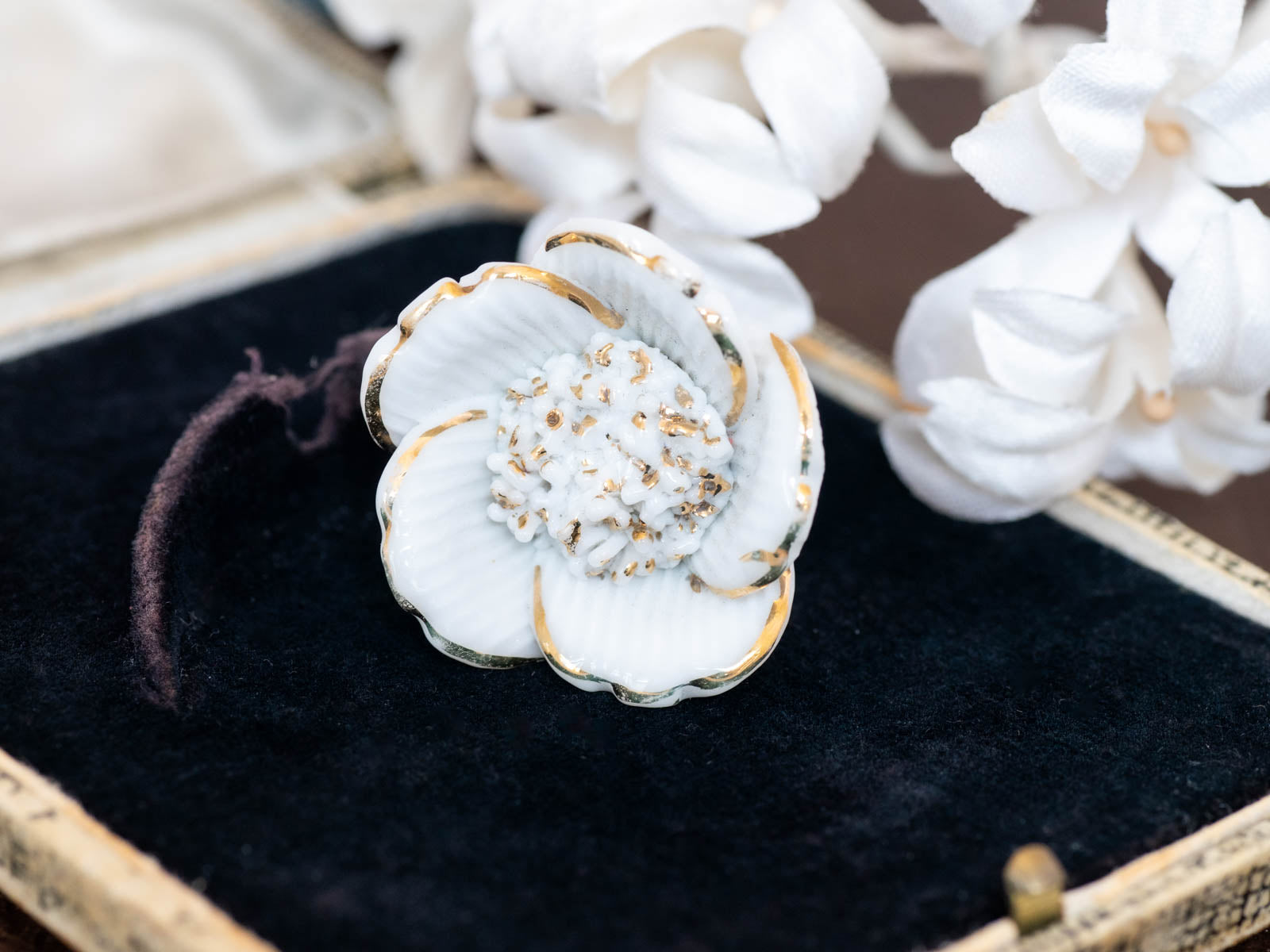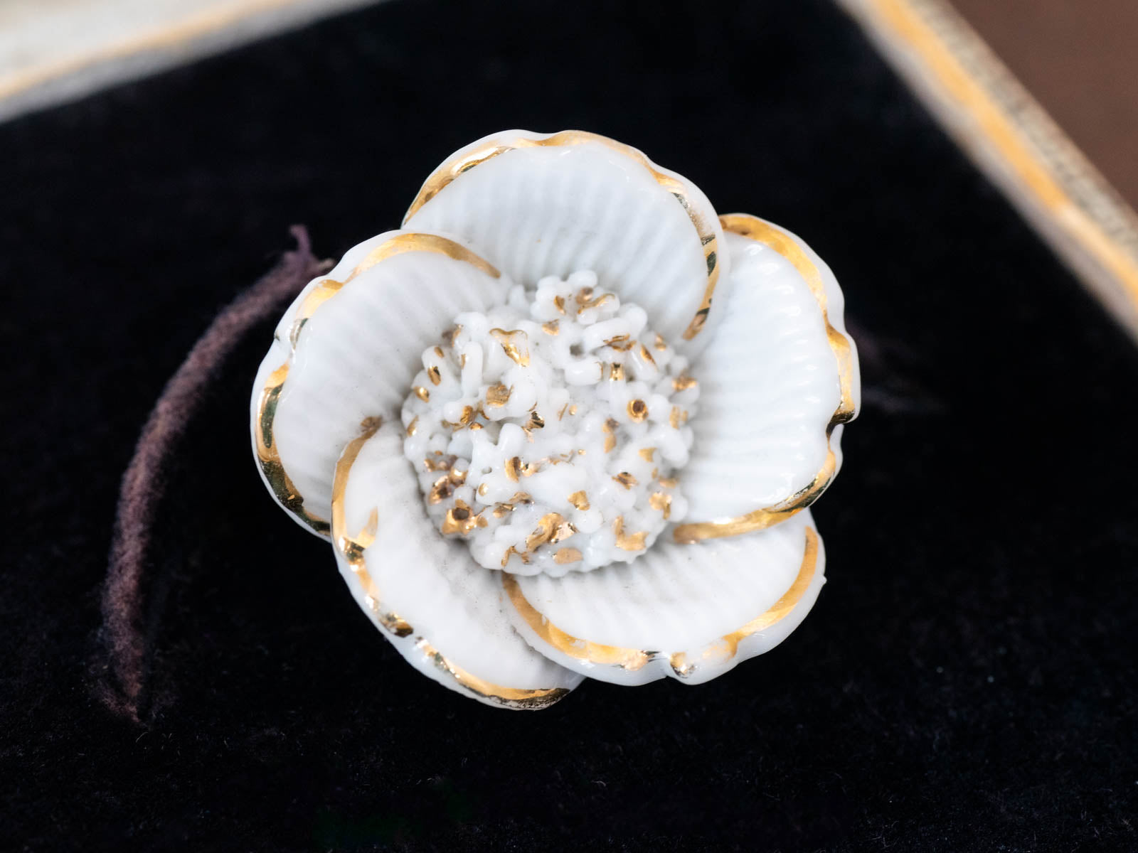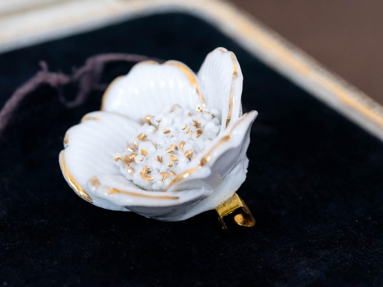 ホワイト&ゴールドの陶器製お花・ブローチ