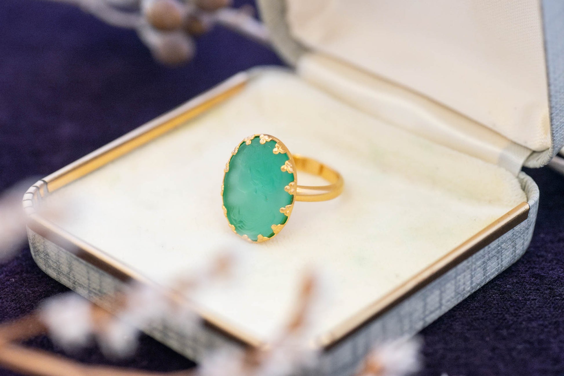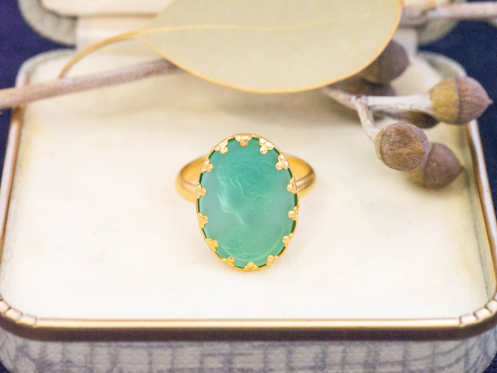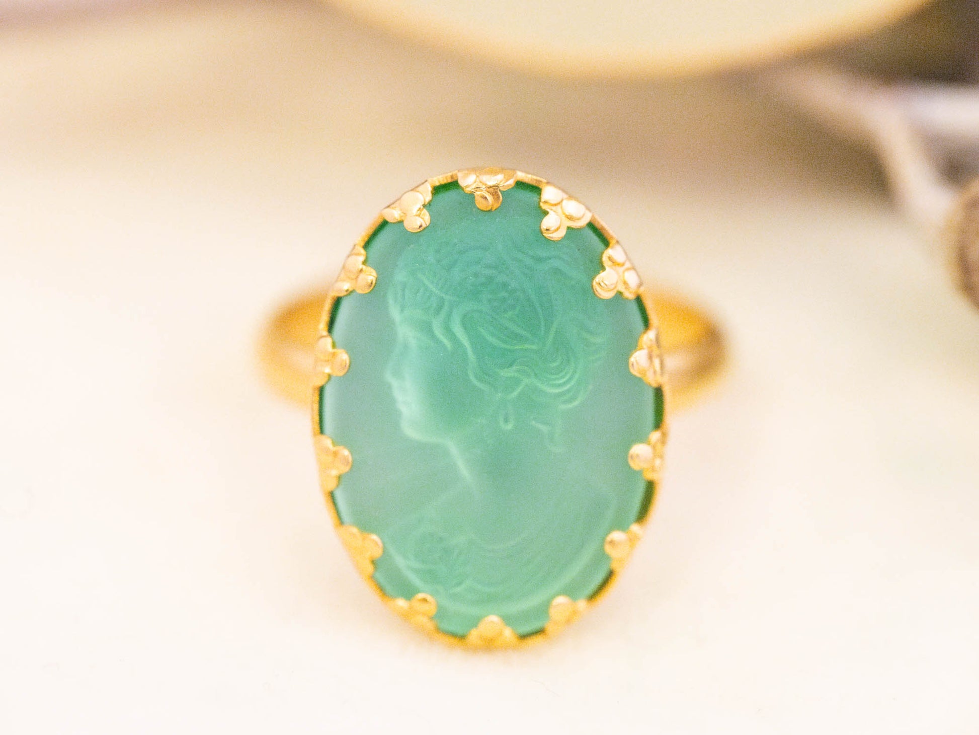 マットなすりガラスのような質感を持つ、カメオカボションをリングに仕立てました。