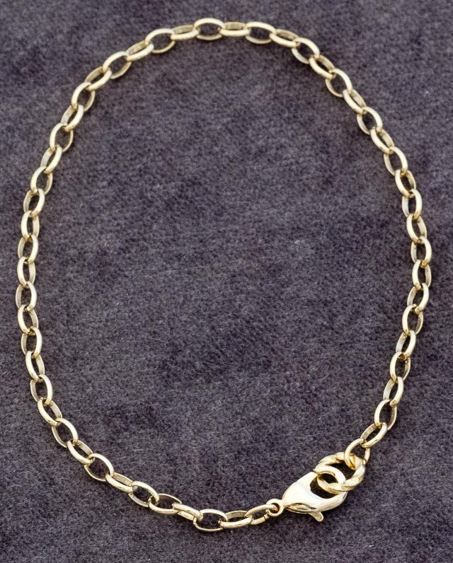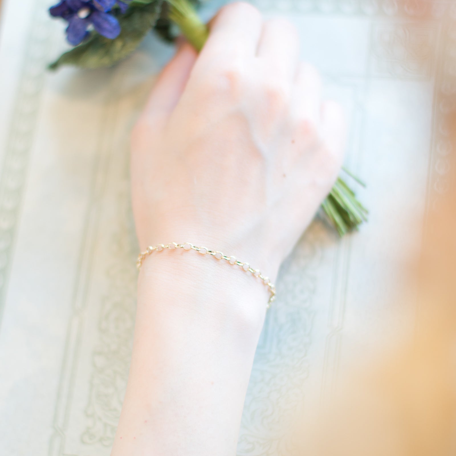 拡大写真のようにチェーンの輪にペンダントを取り付けてブレスレット・アクセサリーが作れる、ブレスレットチェーンです。