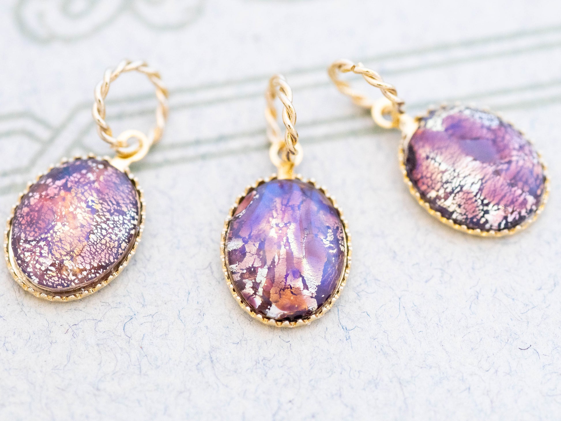 パープルカラーの中でも濃いめな印象。ブドウのようなカラーにも見えます。ツイストバチカンを葉っぱモチーフのバチカンに変更することで、葡萄のようなフルーツのようなデザインに。少しのアレンジでオリジナルのアクセサリーに変貌します。
