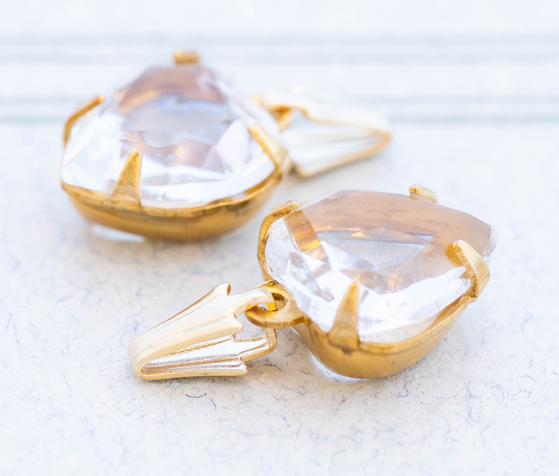 ハートのカットが繊細に施されたクリスタルカラーのグラスストーンです。