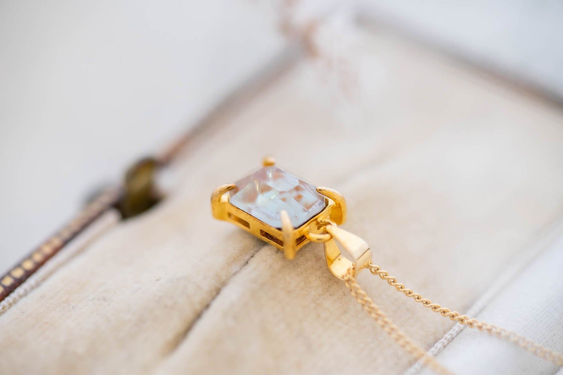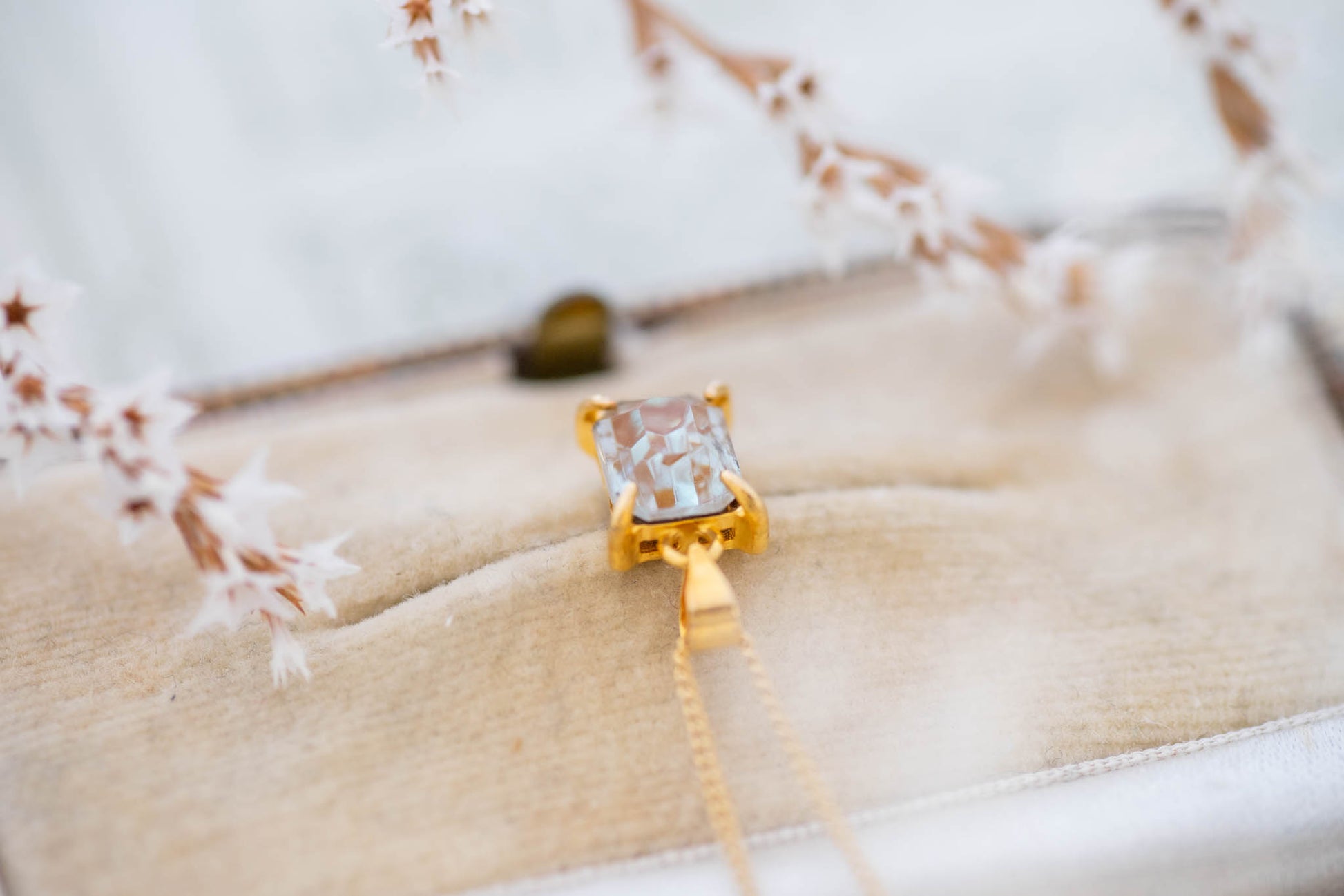 こちらのヴィンテージサフィレットは明るい光を吸収しライトブルーに輝き、光源によってシーグリーンのような緑色を纏う瞬間もあり、透明感のあるお色味が特徴です。