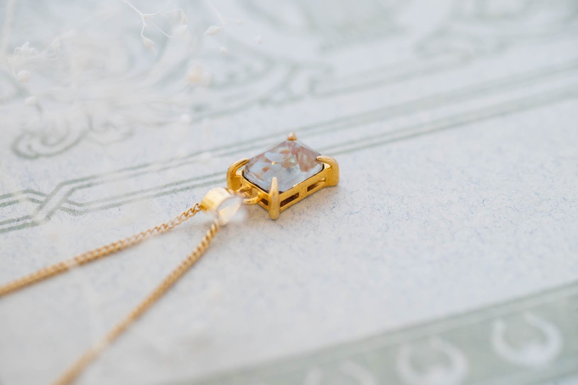 こちらのサフィレットペンダントの優しい雰囲気に合わせて、柔らかい肌触りの優しい質感のチェーンを合わせています。