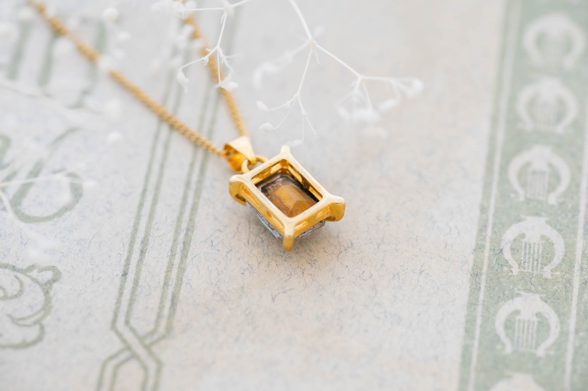オクタゴンカットの平行にカットされた面からの様々な角度から光を吸収し、サフィレット特有のお色味を一層表現してくれるデザインです。